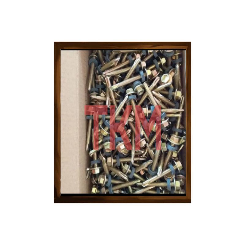 SEKRUP ROOFING KUNING SDS/ BAUT BAJA RINGAN-Diameter Badan 4,8(#12)-Panjang 50MM (5CM)-Kepala Sekrup 8MM( Kunci shock 8)-Sekrup + Karet hitam-Marking BDMBARANG BERKUALITAS, HARG