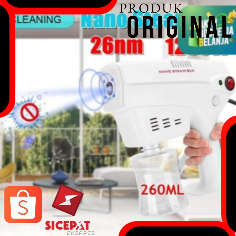 Semprotan Disinfektan Electric Nano Spray Gun Portable Steam GunNANO SPRAY GUN(ADA SINAR BLUERAY / UV NYA)SPESIFIKASI :POWER : 1200 WVOLTAGE : 220 VOLTBERAT : 1.3 KGWATER BOTTLE CAPACITY : 260MLPOWER CORD LENGTH : 2.5 METERNANO STEAM GAS PRODUCTION : 22ML/MIN(SUPER NANO KECIL SEHINGGA GA BIKIN BASAH DEMEK)BISA DIISI SEMUA CAIRAN MAU DISINFECTAN MAU ALCOHOL CAMPUR AIR JUGA BISA.TERIMA KASIH DAN SELAMAT BERBELANJAPERATURAN PEMBELIAN :1. Barang yang sudah dibeli tidak dapat di cancel / dibatalkan dengan alasan apapun.2. Semua data alamat, no hp, nama yang dicantumkan pembeli adalah data yang akan kami pakai. TIDAK dapat diubah dengan alasan apapun.3. Pemilihan varian warna, ukuran, logo, bentuk, dan sebagainya hanya dapat dilakukan dengan memilih varian yang kami sediakan. CHAT / DISKUSI / CATATAN PEMBELIAN, akan kami abaikan.4. Berikan data selengkap-lengkapnya dan sejelas-jelasnya agar barang cepat sampai dan transaksi lancar.5. Tidak dapat memilih varian barang berarti varian barang tersebut kosong.PERATURAN KOMPLAIN BARANG :1. Setiap kali membuka paket harap lakukan dokumentasi dengan cara memvideokan barang yang anda terima.2. Pada paket anda, ada 2 lembar jenis kertas, pertama adalah surat jalan dari kami, dan yang kedua adalah lembaran resi expedisi. Harap kami minta lampirkan lembar kertas surat jalan dari kami.3. Komplain hanya dilayani di Pusat Resolusi, selain itu kami anggap tidak ada komplain.4. Kami akan berusaha sebaik mungkin membalas komplain. Kami harap semua pembeli sabar dalam menghadapi komplain.5. Komplain akan kami lakukan dengan adil dan bijaksana.