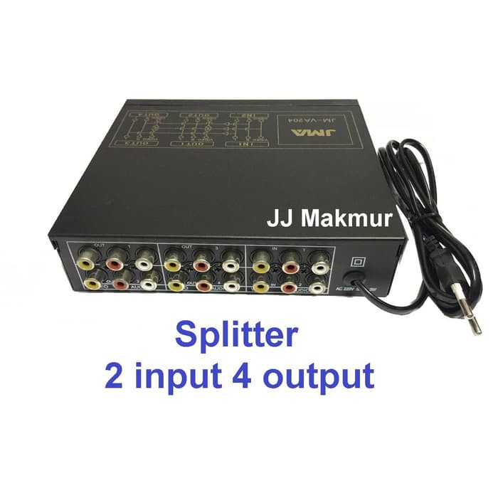 ME Splitter RCA Audio VIdeo 2 input cabang 4 output load port AV Selektor===========================Deskripsi produk- Audio video selektor 2 input 4 output- cocok digunakan pada TV yg hanya memiliki input terbatas- Dimensi dus 18x18x5 cmBARANG KIRIM KHUSUS PADA HARI KERJA (SENIN-SABTU) ; HARI MINGGU / TGL MERAH KAMI LIBUR.JADWAL KIRIMAN HARI YG SAMA - NINJA, SICEPAT & ANTAR AJA (senin-Sabtu sebelum jam 15) - JNT JNE (senin-sabtu sebelum jam 16)JIKA LEWAT DARI JAM YG TERTERA MAKA BARANG DI KIRIM HARI KERJA ESOK NYA. HARI MINGGU / TGL MERAH TIDAK ADA KIRIMANSTOK KAMI READY, JANGANRAGU UNTUK TEKAN TOMBOL BELI. SELAMAT BERBELANJA !!! ===========================###Mohon tanyakan stok sebelum order untuk meminimalisir batal order dikarenakan stok produk kosong,terimakasihhh ###===========================Splitter RCA Audio VIdeo 2 input cabang 4 output load port AV Sel