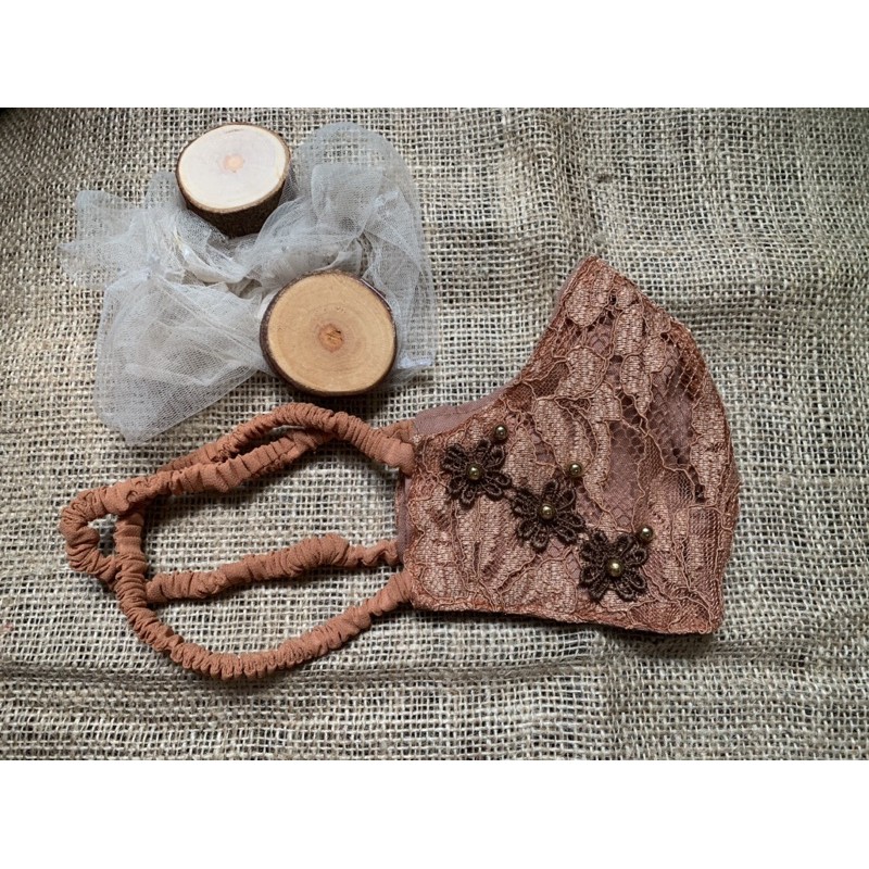 Masker Brokat 3 lapis, brokat dan kain katun sebagai pelapis. Karet Hijab sangat panjang dan nyaman dipakaiUkuran masker besar lebar 20cmCocok dipakai acara konda