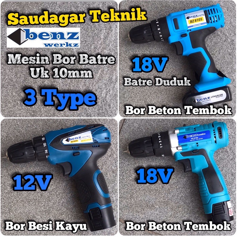 Best Seller Perlengkapan di Kabupaten Sinjai Mesin Bor Tembok Baterai Benz 18 V 12 V Cordless Impact Drill Benz 18v 12v dari Saudagarteknik Kota Jakarta Pusat