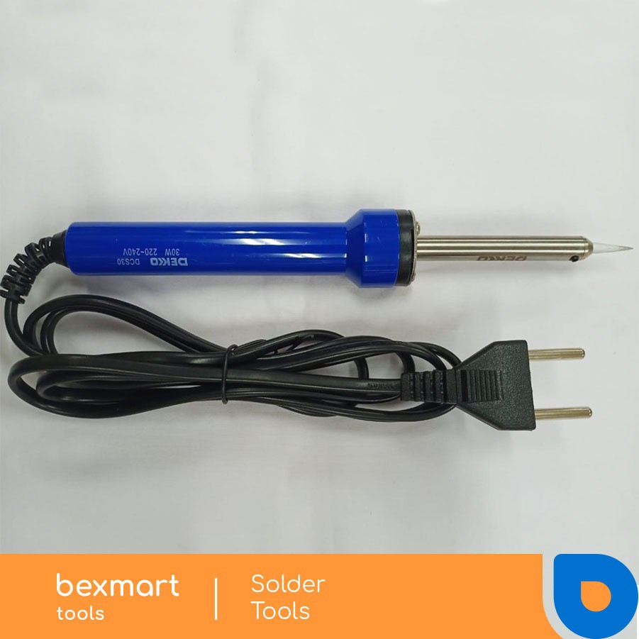 Solder Dekko DCS-30 ( 30 Watt, with sharp tip )Ujung tip dibuat sangat runcing karena peruntukan solder ini untuk reparasi PC Board, Handphone, IC Transistor, Chip Condensor dll yang memerlukan kepresisian ujung