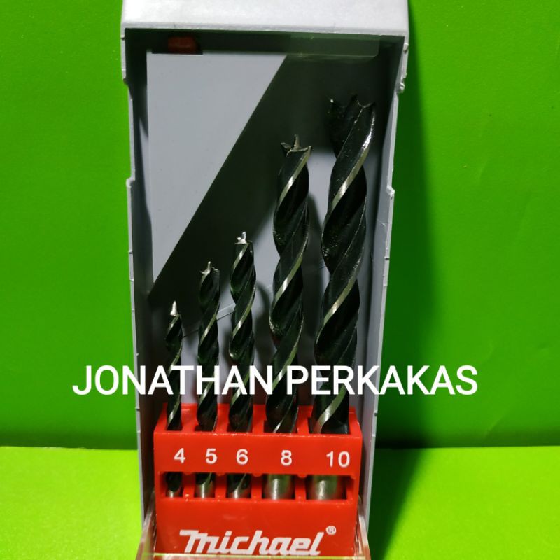 mata bor kayu set/paket isi 5pcs ukuran 4mm, 5mm, 6mm, 8mm dan 10mm merk product michael,,, miliki segera
