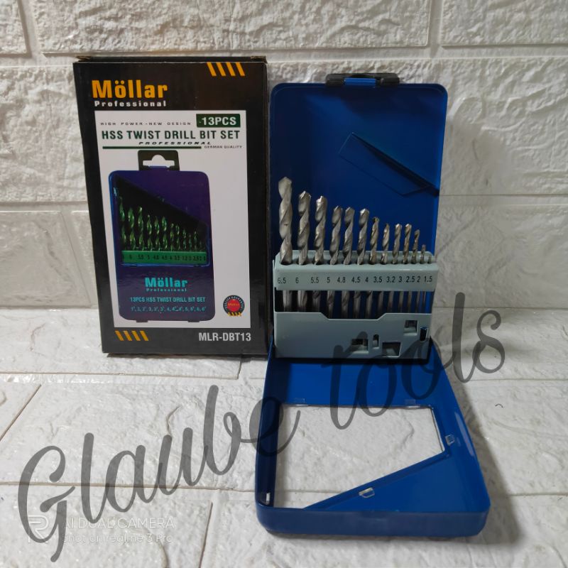Deskripsi MATA BOR BESI SET HSS MATABOR 13 PCSMatabor besi HSS merk MollarHSS TWIST DRILL BIT SET 13 PCSUkuran : 1,5 - 2 - 2,5 - 3 - 3,2 - 3,5 - 4 - 4,5 - 4,8 - 5 - 5,5 - 6 - 6
